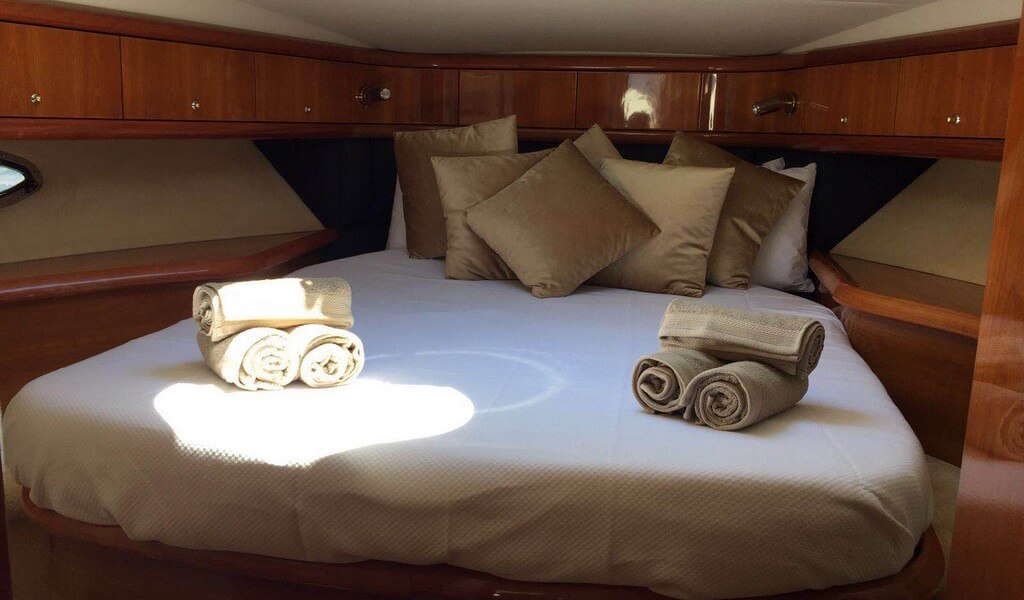 A beauty of a boat that offers ample seating space and two comfortable sunbeds, this is a great choice for relaxing on the iridescent waters of Formentera and bring some water toys to play in the crystal clear sea. Toast the occasion with a crisp glass of bubbles and enjoy island life