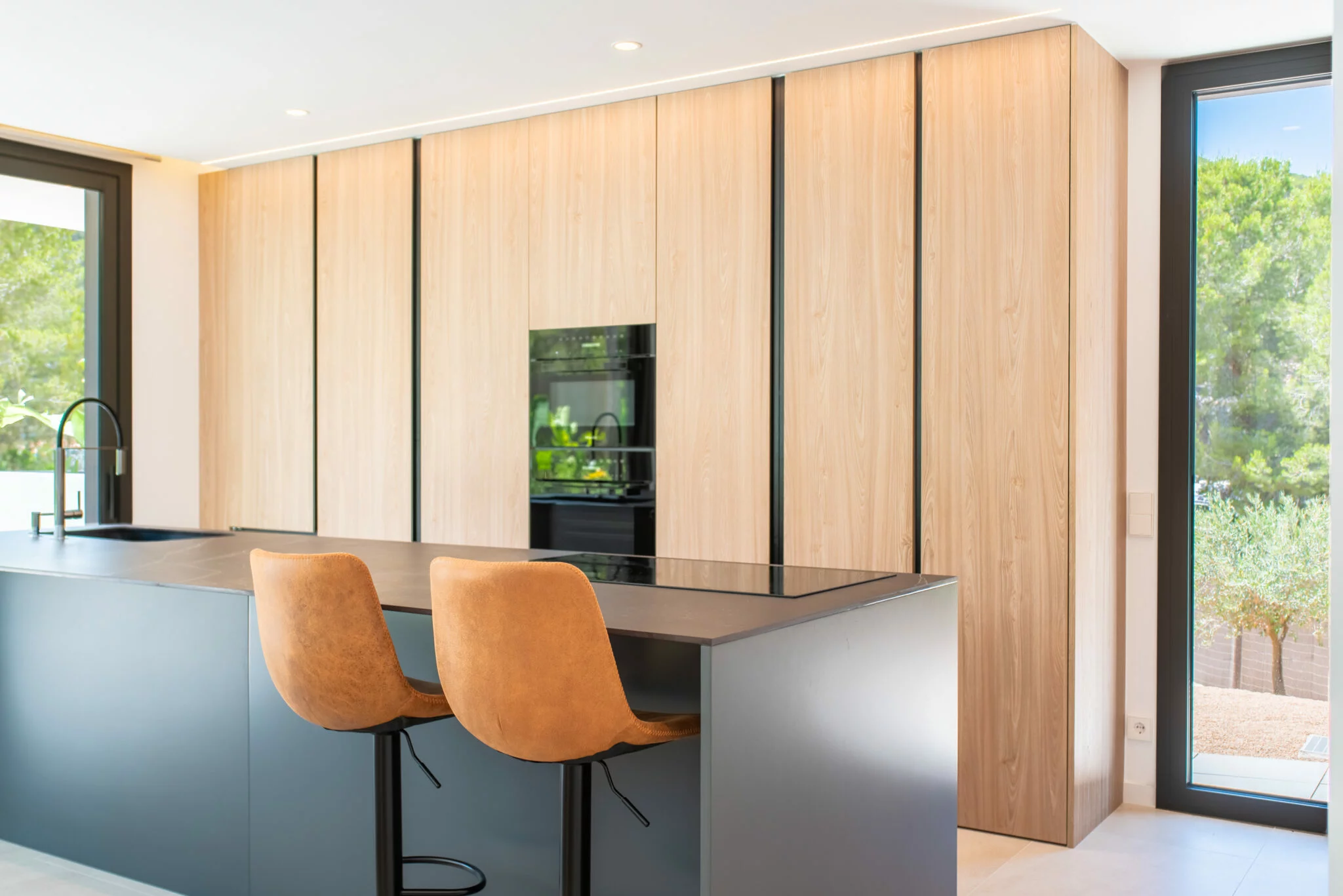 Additionally, there is a solarium with pool and panoramic views of the sea and golf course. The exterior offers a beautiful garden designed by an experienced architect, with lighting throughout the space, main pool, and chill-out area. Located 10 minutes from Ibiza and Santa Eulalia, 1.5km from Cala Olivera beach. The community features 24-hour security and barriers for vehicle entry.